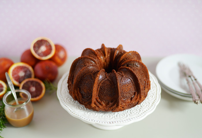 Blood orange, rosemary, brown sugar and caramel marble cake / Bolo marmoreado de laranja sanguínea, alecrim, açúcar mascavado e caramelo.