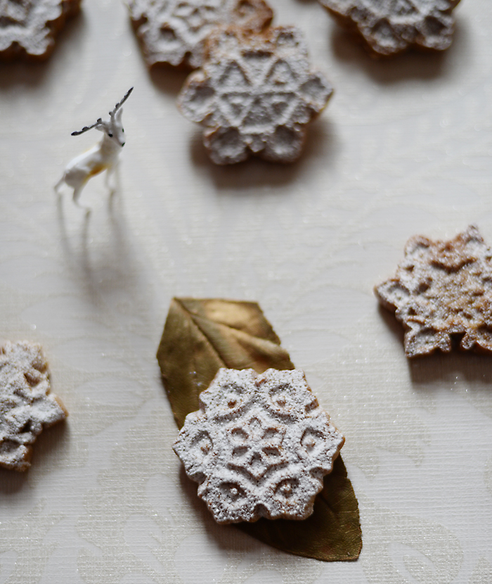 I used snowflakes embossed cutters and these biscuits are a treat for everybody to snack around here and they'll be the biscuits that will be left for Santa alongside a glass of sweet wine and the carrots for the reindeers.